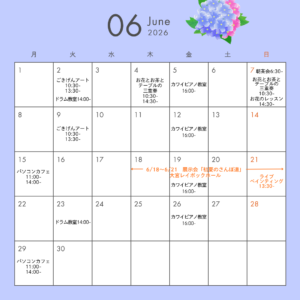 当サロンでは、音楽・アート・癒しの3つをテーマにした幅広いジャンルのレッスンや、撮影会、作品展、食事会などのイベントを開催しています。